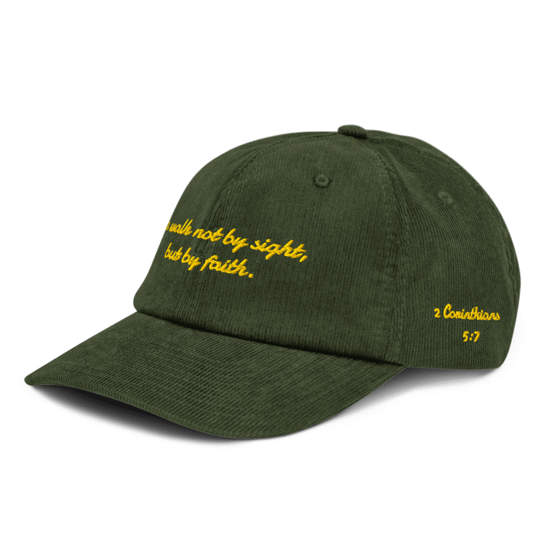 Made from premium corduroy with a curved brim and the verse embroidered on the front, this cap blends modern streetwear with a timeless message.